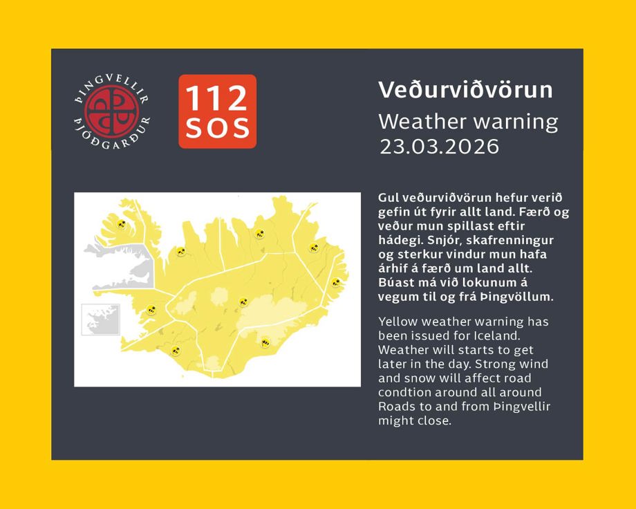 Gul veðurviðvörun 23.03.2026