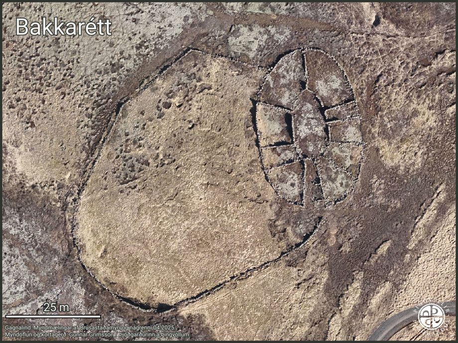 Samsett, upprétt loftmynd af Bakkarétt frá apríl 2025.