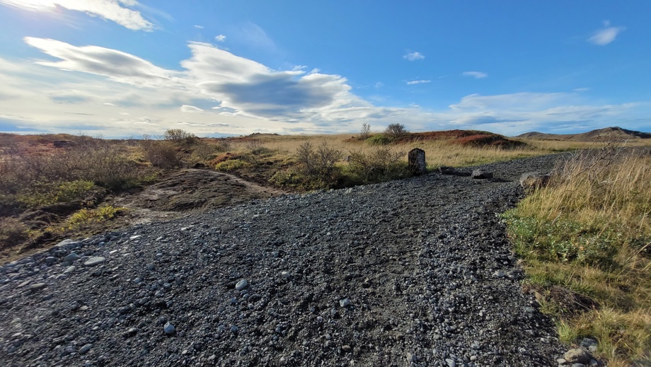 Gengið til suðausturs meðfram túninu í Skógarkoti.