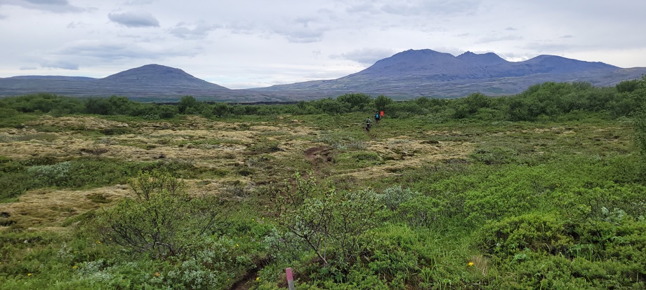 Horft til norðvesturs að Búrfelli og Botnssúlum á miðri leið, skammt sunnan Krókhóla.
