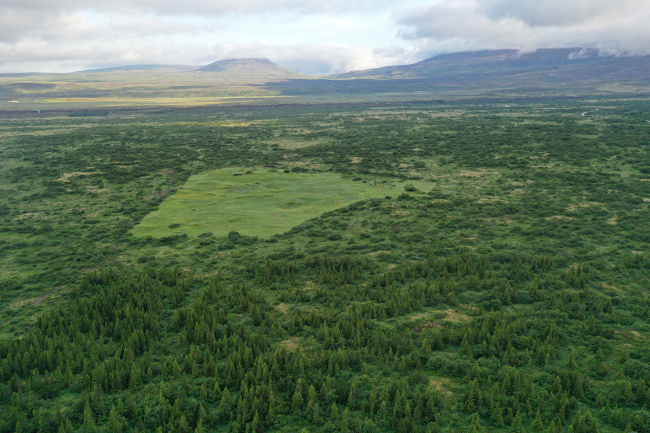 Enn má greina vel túnin í Skógarkoti. Gangandi gestir fara í gegnum þéttan birkiskóg áður en komið er að hinum fornu túnum.